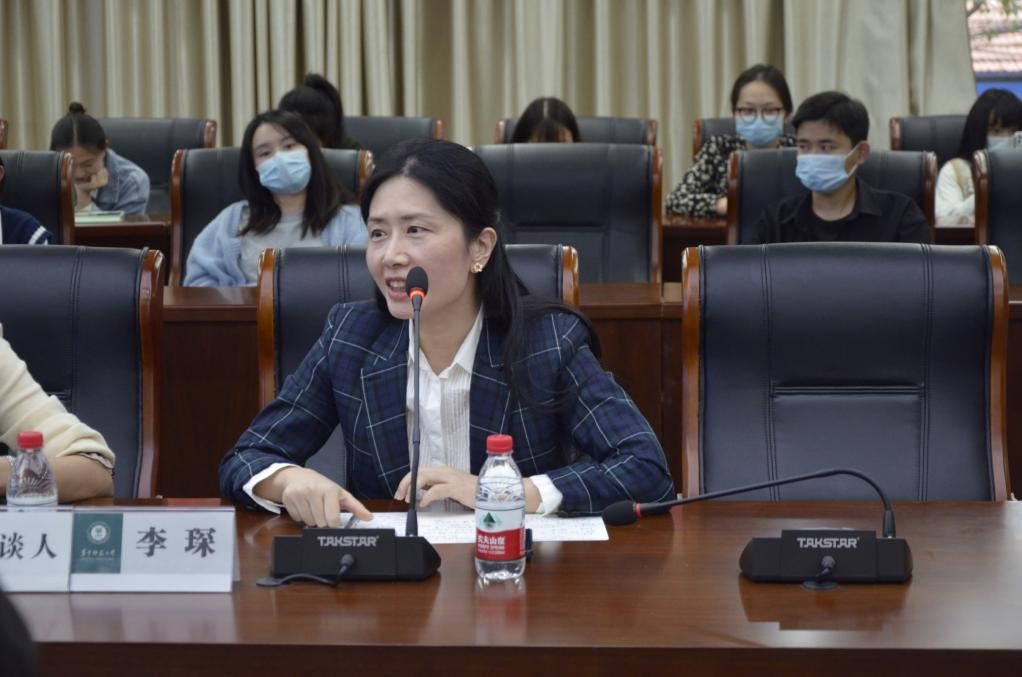 在与谈环节,李琛老师表示从杨帆副教授的分享中感受到法学课程也可以变成互动和思辨融为一体的教学启发,并从“学什么,怎么学,为什么学”三个方面介绍和分享了自身的教学感悟和教学经验。