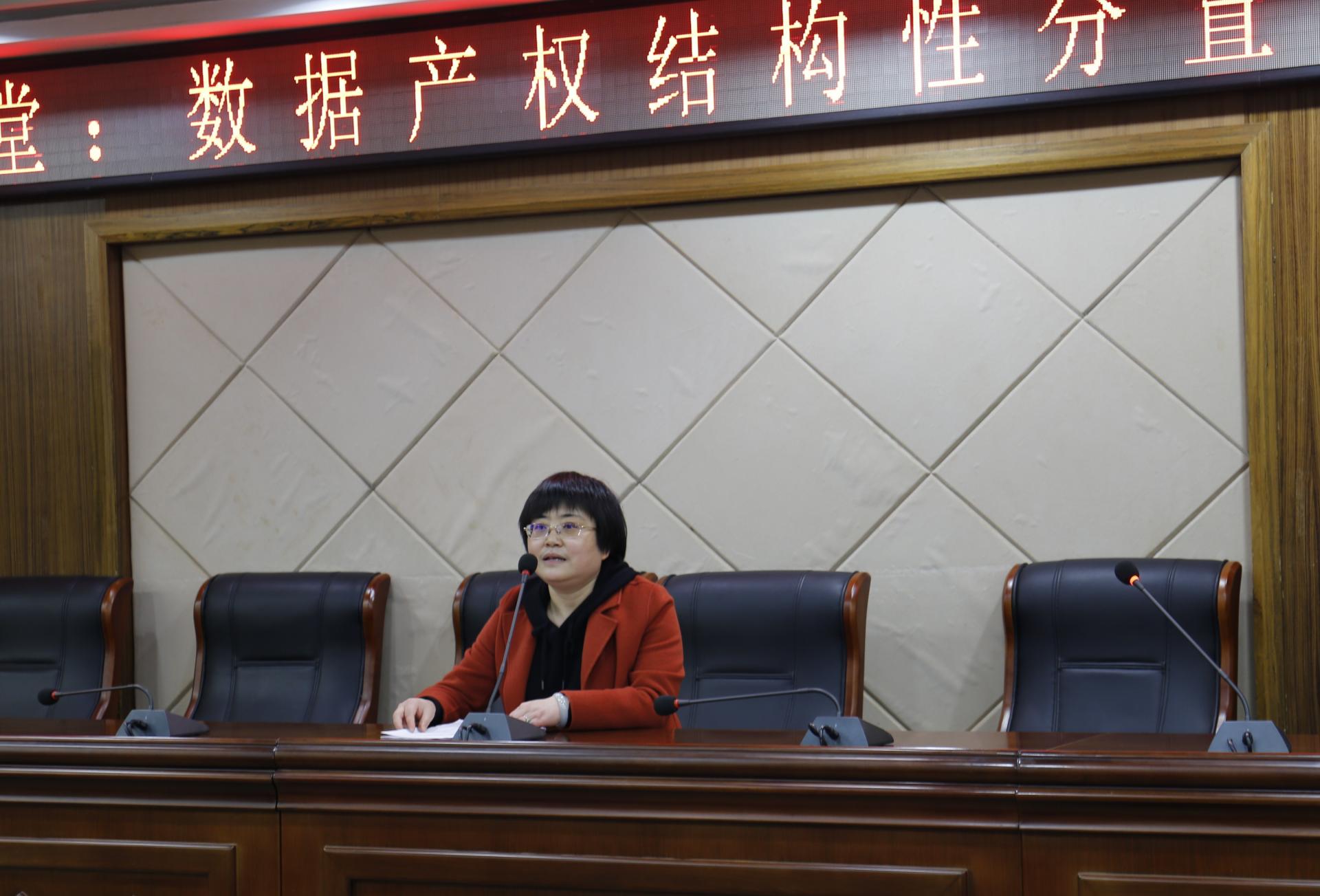 在主讲环节,张素华教授从数据产权的意蕴、数据产权结构性分置的演变历程、结构性分置是数据要素市场化配置的必然选择、数据分类、企业数据产权结构性分置的法律实现和公共数据产权结构的法律实现等方面展开学术讲座。