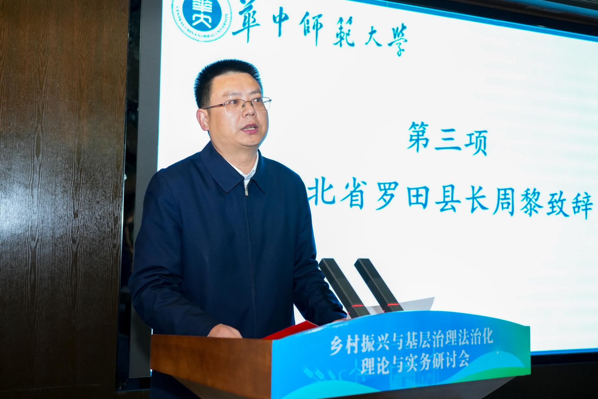 湖北省罗田县委副书记、县长周黎向参会领导、专家学者表示热烈欢迎与衷心感谢,他介绍了罗田县全面贯彻落实乡村振兴战略的工作思路和具体做法,并期待与各位专家学者共同研究新时代基层治理的新情况、探讨新途径、解决新问题。