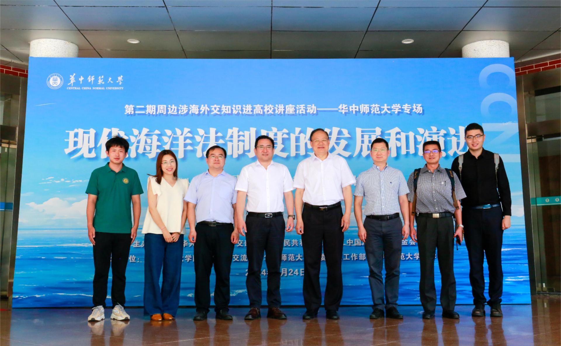 法学院讯(记者 金若凡 刘冰瑶)5月24日,“第二期周边涉海外交知识进校园讲座活动”于华中师范大学科学会堂一楼报告厅举行。中国海洋法学会会长、最高人民法院国际商事法庭专家委员会专家委员高之国教授应邀以《现代海洋法制度的发展和演进》为题作学术讲座。华中师范大学党委副书记陈迪明,法学院院长丁文,华中师范大学党委学生工作部思政处副处长李宪玲、国际合作与交流处副处长吴明,法学院党委副书记万枞、副院长肖登辉及华中师范大学法学院、社会学院等学院师生参加讲座。讲座由丁文主持。