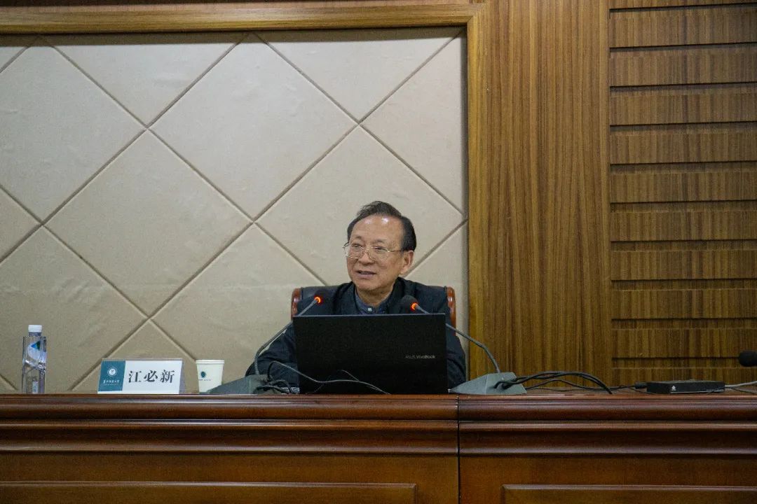 讲座开始前,江必新在副校长刘宏达和学院党委书记杨臣、院长丁文等陪同下,在学院进行了参观和会谈。