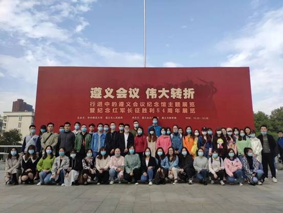 为了纪念长征胜利84周年,走好新长征路,为贯彻落实习近平总书记关于学习“四史”的重要论述,深入推进学校“四史”学习教育活动,学校和遵义市政府于华中师范大学佑铭体育馆联合举办《长征与遵义会议——行进中的遵义会议纪念馆主题展览》。10月24日,我院20级研究生学术型综合党支部、法律硕士第一支部和法律硕士第二支部的同学在学院老师的带领下,参观学习本次主题展览。