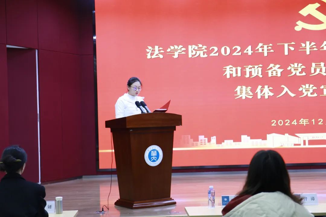 新发展预备党员代表、本科党支部赵扬帆,转正预备党员代表、法律硕士(非法学)第三党支部吕妍,入党积极分子代表、本科2301团支部陆静蕾分别发言。他们表示,要坚定理想信念,以高标准要求自己,积极投身于社会主义建设的实践之中,追求自身的全面提升。