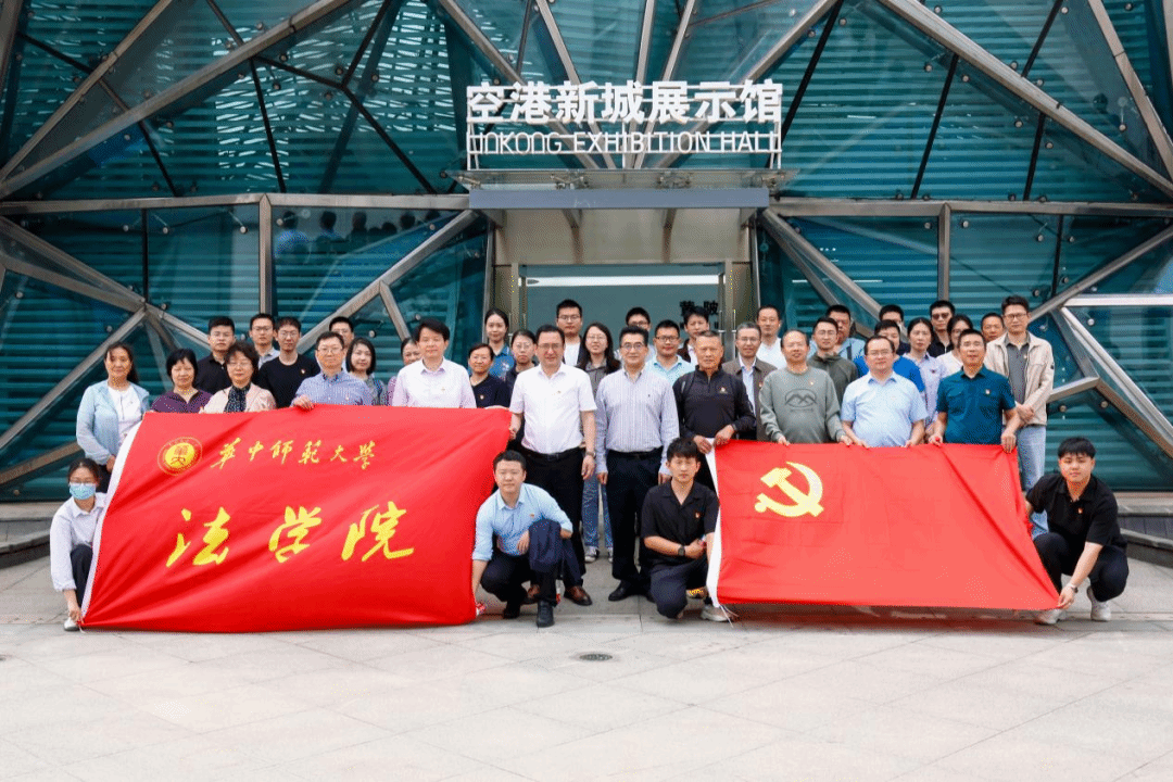 在黄陂规划展示馆及新校区选址地,工作人员详细介绍了黄陂区空港新城的建设规划以及新校区的整体规划、周边设施、办学规模和建设周期等情况。在展示馆内,全体党员观看了“新汉口·新未来”形象宣传片。随后,一行俯瞰盘龙城校区选址全貌。在实地观察中,全体党员同志围绕“法学院未来学科发展和布局”展开热烈讨论,进一步明晰新校区建设的战略意义。