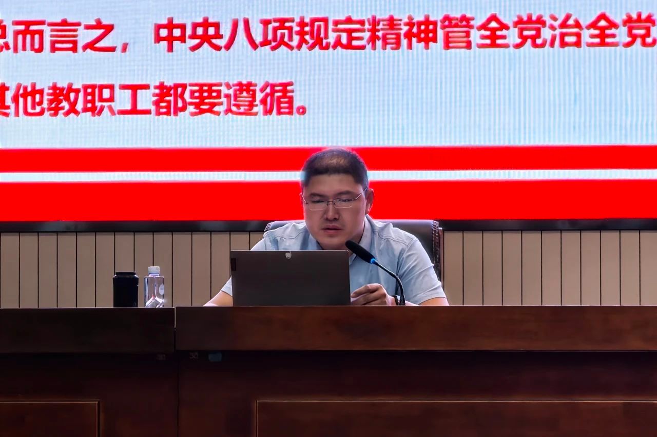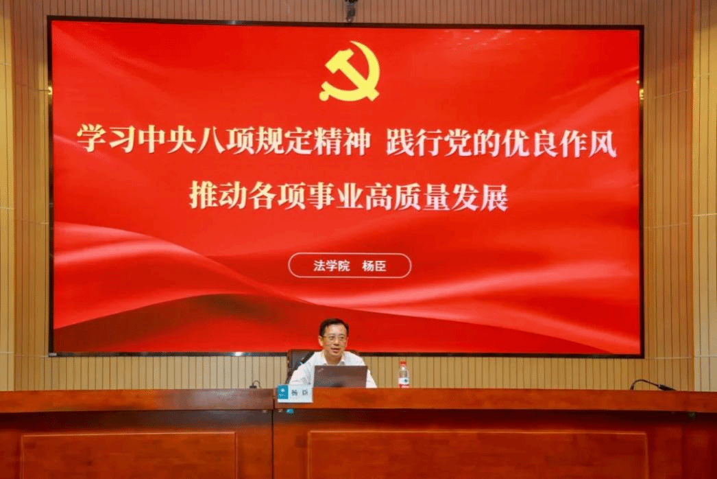5月24日,法学院2025年党员轮训暨党支部书记培训邀请校纪委办殷杰老师以“持续筑牢中央八项规定堤坝,以优良作风护航学校‘双一流’建设”为主题授课。5月23日,法学院团委书记、党委宣传干事、学生党建中心副主任张永基以“学百年党史,悟思想伟力”为主题主讲2025年党员轮训暨党支部书记培训党史教育课。全体学生党员及党支部书记参加培训。