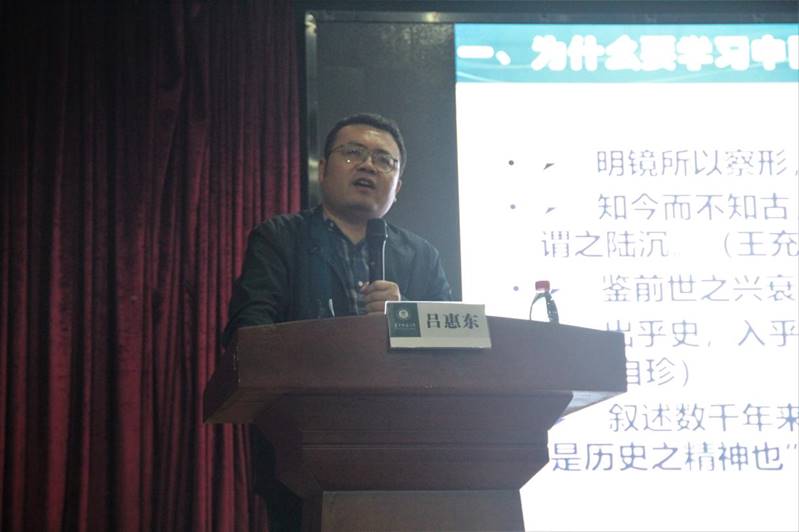 讲座伊始,吕惠东用几个生动的历史典故介绍了党的历代领导人对党史学习的态度,并系统阐述了党史学习的重要性。党的百年历史中蕴含着最宝贵的思想结晶和精神财富,学习党史有利于稳固历史根基,确保红色基因代代相传,学习党史可以让我们从历史的盛衰兴亡中得到对于党的发展道路的启发。