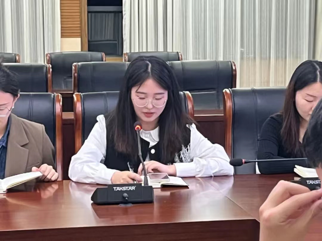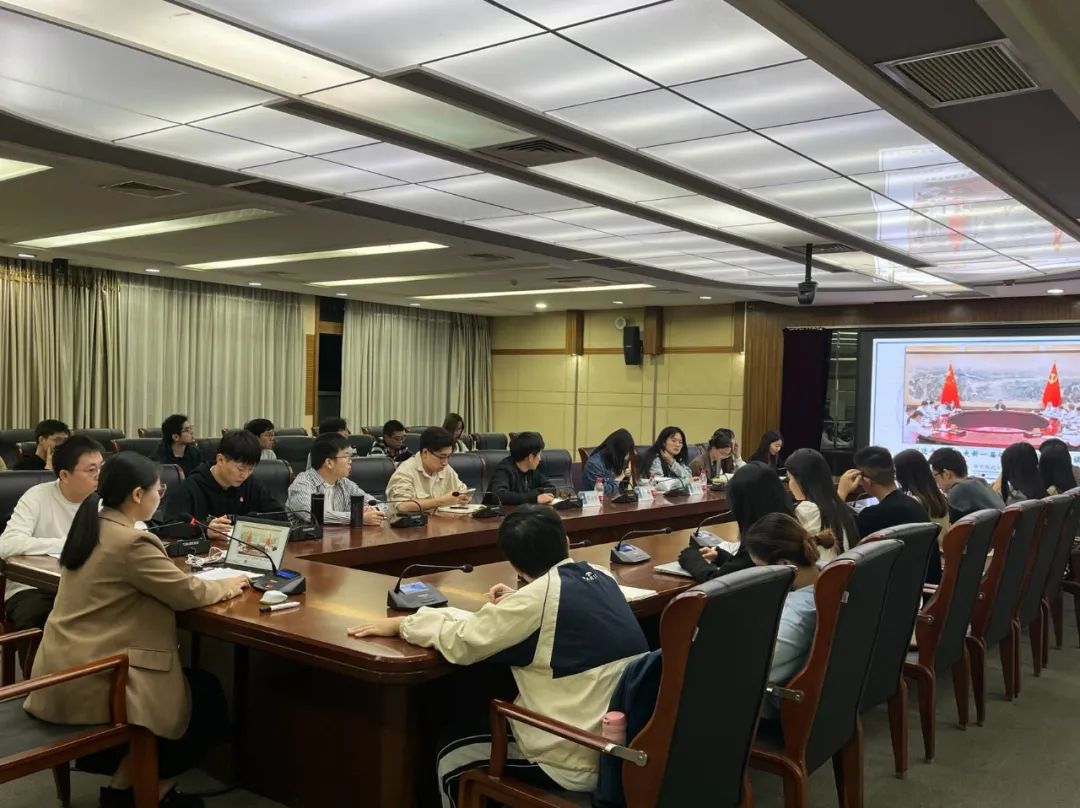会议伊始,研究生团总支成员徐程带领大家学习了习近平总书记同团中央新一届领导班子成员集体谈话精神,就党与共青团、党与青年、党与团干部、共青团与青年四个方面进行重点学习,号召广大青年切实肩负起新时代新征程党赋予的使命任务,充分激发广大青年在中国式现代化建设中挺膺担当。接着,与会成员共同观看并学习了习近平总书记在全国宣传思想文化工作会议上做出的重要指示内容,持续加强对习近平文化思想的学习、研究、阐释,引领大家自觉贯彻落实到宣传思想文化工作各方面和全过程。