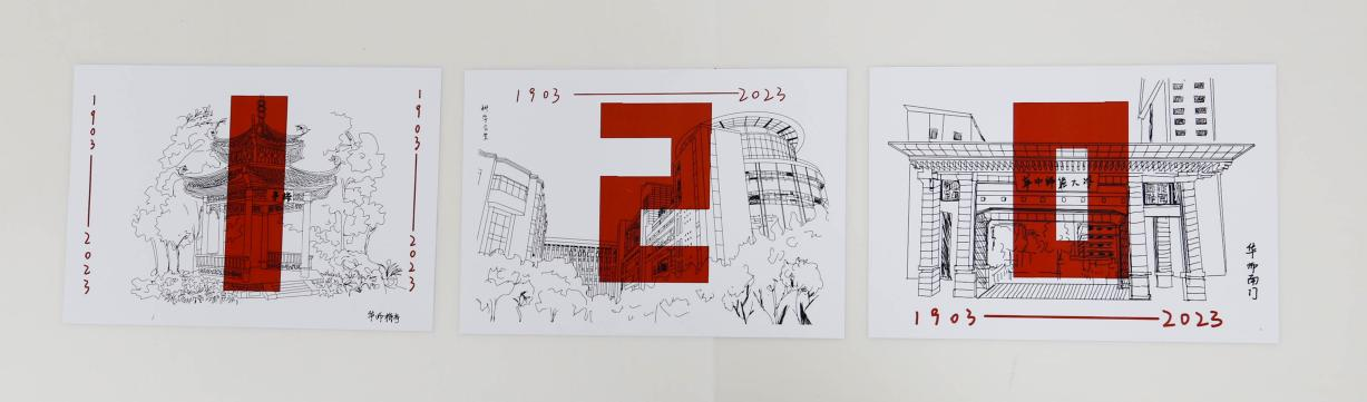 本作品以华师校内建筑物为蓝本,手绘华师梅亭、科学会堂、华师南门系列绘画庆祝华中师范大学120周年。