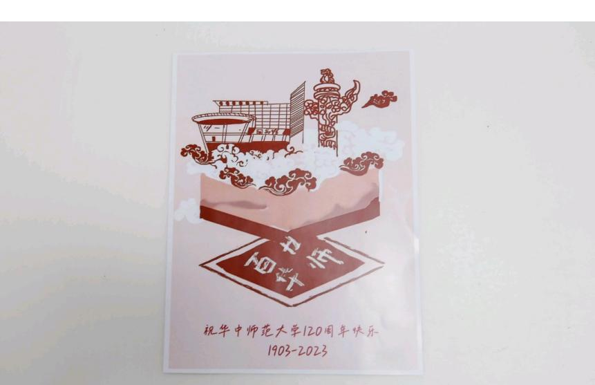 作品造型是一个印章结合华师图书馆、中华表造型的设计,理念是120年间华师学子奋发向上的精神促进了现代化强国的建设,未来华师也将助力中华民族伟大复兴。