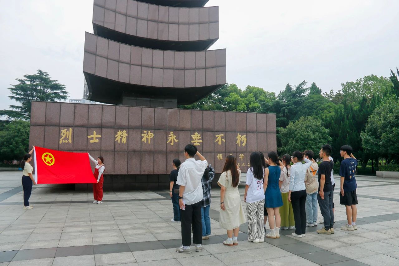 进入正门后,团支部成员在荆州市沙市区革命烈士陵园进行参观,沿着代表中国共产党走过的28年抗战历程的台阶拾级而上,映入眼帘的是程子华同志亲笔题词的“烈士精神永垂不朽”纪念塔。在纪念塔前,郑紫晨介绍了纪念塔意义与革命烈士的英勇事迹,带领成员回顾了中国共产党带领全国各族人民进行革命、建设、改革的伟大征程,并激励成员们认真学习、积极实践,传承革命精神,为以中国式现代化推进中华民族伟大复兴贡献青春力量