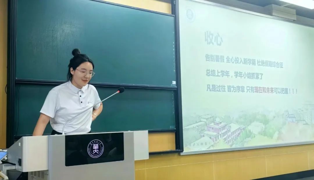 2023级本科生辅导员焦修齐以“启航大二,携手共进新征程”为主题,提醒同学们要积极调整状态,从假期的轻松氛围中收心归位,以饱满的热情投入到大二的学习生活中。随后,就班委换届、评优评先等事宜进行了详细说明,鼓励同学们积极参与班级建设,争当表率。