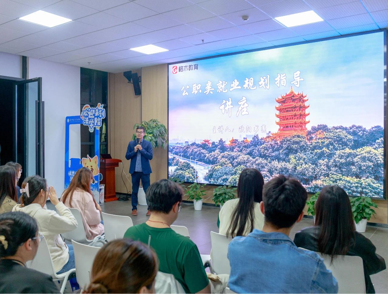 10月25日晚,灋行学习发展中心在法学院一楼大厅开展“职来职往大讲堂之公职类就业规划讲座”。格木教育机构讲师欧阳书亮受邀为法学院学子分享公职类考试考情与备考经验。讲座由24级研究生黄咏薇主持。