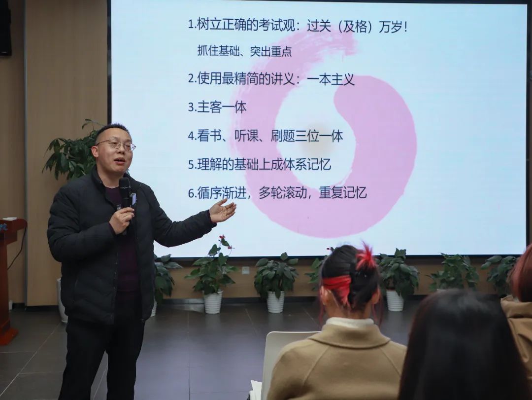 3月7日晚,由灋行生涯规划与学习发展中心与学生会联合主办的“法考备考指导讲座”在法学院一楼大厅圆满落幕。中南财经政法大学副教授夏昊晗受邀担任主讲嘉宾。夏教授系统性地阐述了考试大纲的结构、学科权重分布以及命题趋势的研判方法。针对备考策略和资料选择,夏教授提出了专业性的建议:深入剖析历年考点,明确主次关系,循序渐进地复习,多轮滚动式巩固,注重重复记忆,并科学规划备考进程。
