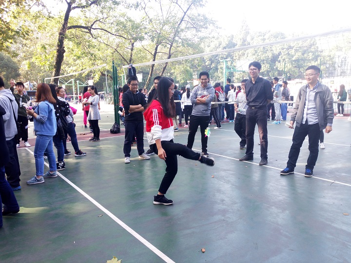 法学院讯(通讯员李静 摄影左进玮)11月4日下午,我校2016年运动会毽球项目预决赛在西区篮球场举行。我院的齐奇、梁宇浩等五名男生代表以及左进玮、张玲、周潇潇等五名女生代表参加了这次比赛,大家认真投入到这场比赛中,最终比赛取得了第七名的好成绩。