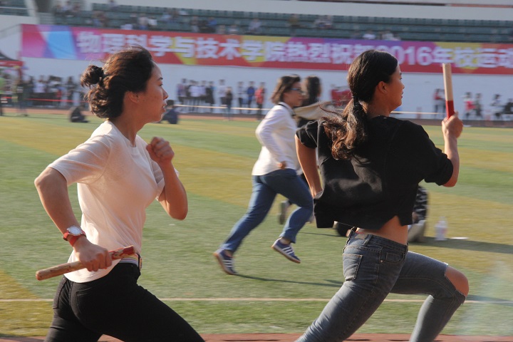 只听一声发令枪响,比赛开始。我院选手位于第三道,这意味着起跑时她会落后别人一截路程,但这并不阻挡住我院选手的发挥。在进行第二棒交接时我院已将差距拉小,杨雨秋同学接过棒后开始加速,在法学院同学的阵阵呐喊助威声中超越了身边一个个对手;第三棒由左进玮同学在弯道接力,经过这一个弯道之后我院的领先优势已经十分明显;第四棒选手由李丹同学接跑,这位在早上一百一十米栏的比赛中发挥出色的法院学子士气不减,凭借着最后的奋力冲刺,一路将领先优势扩大,最终以小组第一的名次冲过终点线。