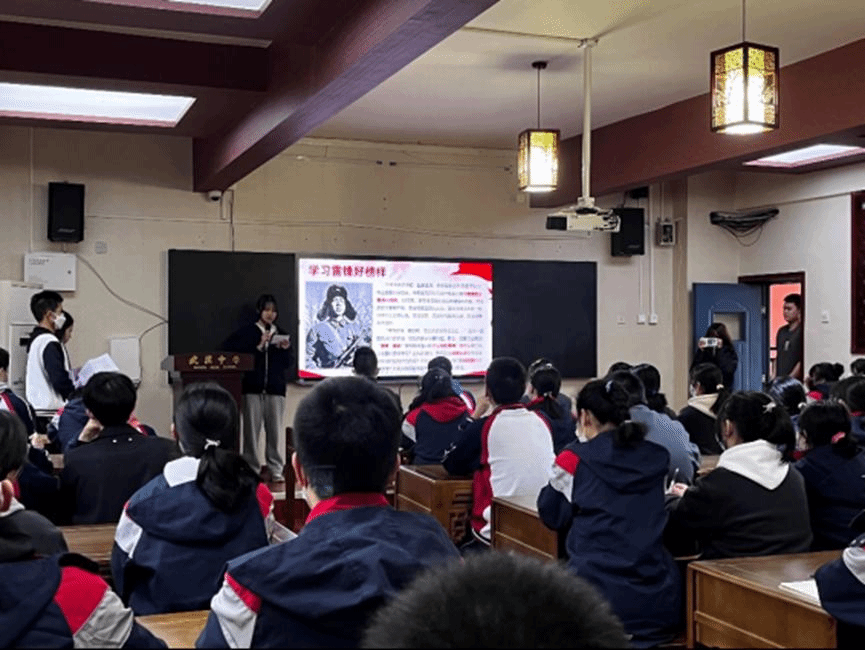 来到班级中,冯珊珊通过梳理习近平总书记关于雷锋精神的重要论述,分享雷锋故事,结合党的二十大精神谈道,中国式现代化的过程是物质文明和精神文明相协调的过程,是学习和践行雷锋精神的过程。同学们交流了自己周围的雷锋故事,分享了在雷锋纪念日当天前往武汉革命博物馆担任志愿者的经历,大家一致认为要在实际行动中践行雷锋精神。
