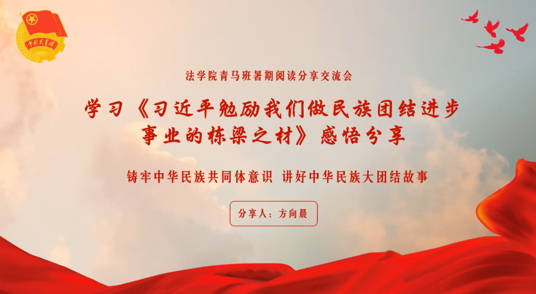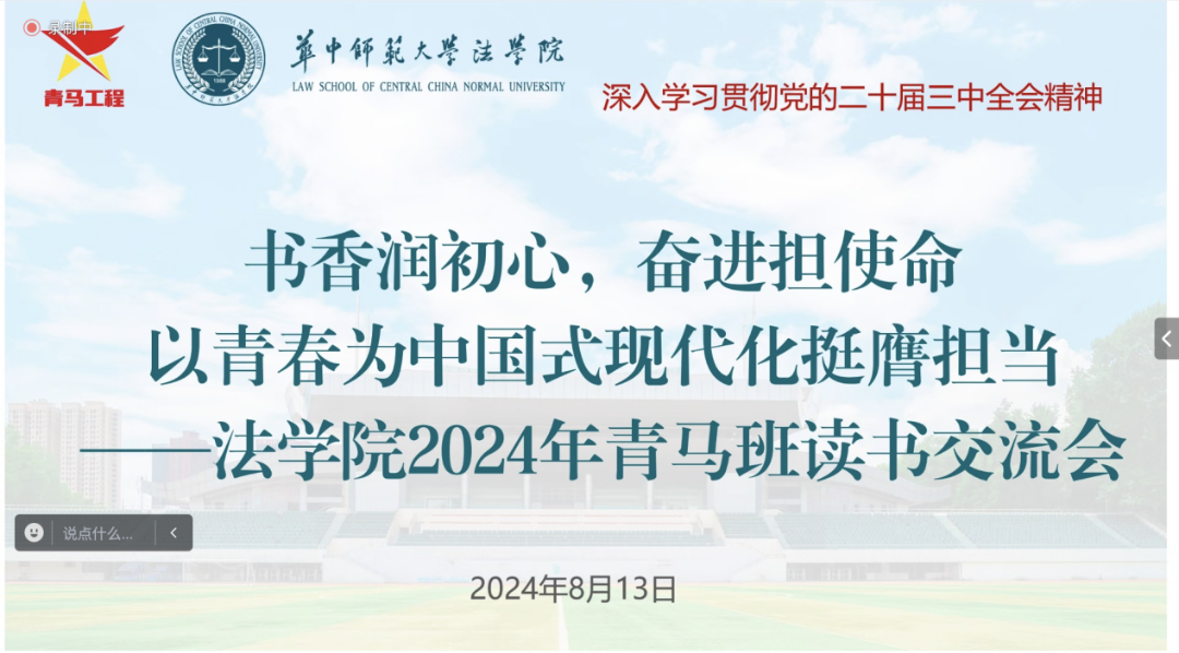 为深入学习习近平新时代中国特色社会主义思想,贯彻党的二十届三中全会精神,8月13日,法学院第二期青年马克思主义者培养工程骨干培养班(以下简称“青马班”)线上开展《习近平与大学生朋友们(第二卷)》读书分享活动。学院党委副书记万枞,学院团委书记、青马班班主任张永基,学院团委副书记、青马班副班主任姜孝文出席,青马班全体学员参加,活动由青马班团支书张麟琛主持。