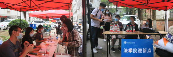截至9月12日中午12时,法学院2020届本科生新生和研究生新生已陆续抵达桂子山,在志愿者协助引导下,顺利完成新生报到相关手续,开启在桂子山的求学生涯。