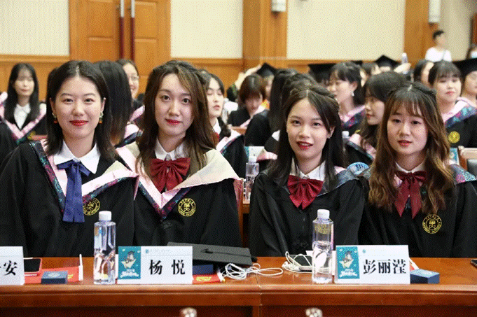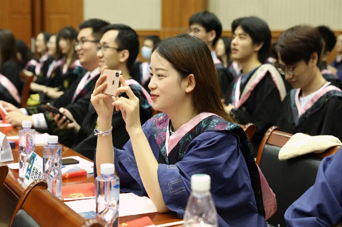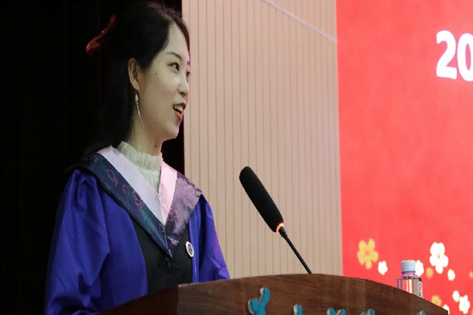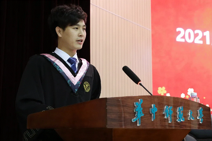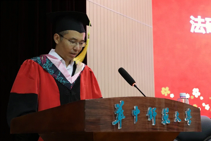 在毕业生代表发言环节,2020届毕业生代表袁菁敏、2021届本科生代表曾茂辉、2021届研究生代表姚婕分别上台发言,讲述他们在华中师范大学、在法学院成长的点点滴滴,感恩老师的悉心栽培,表达临别之时的依依不舍和美好祝愿。