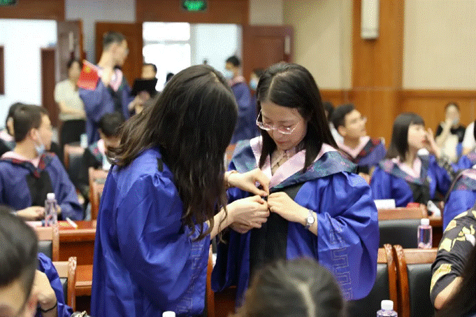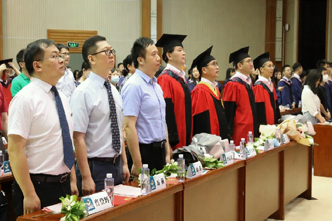 在学位授予阶段,丁文宣读了博士、硕士学位授予名单,文杰宣读了学士学位授予名单,任友洲副校长、李克武教授、丁文教授、文杰教授共同为毕业生拨穗并颁发学位证书。