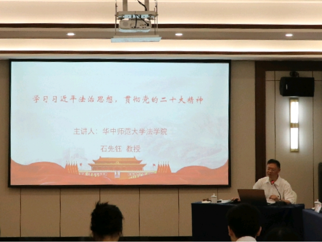 会议伊始,与会全体成员奏唱国歌,重温入党誓词。随后我院石先钰教授领学习近平法治思想。石教授分别从五个方面介绍了习近平法治思想,并做总结表示习近平法治思想是中国共产党人在法治建设长期探索中形成的经验积累和智慧结晶,要深入学习和领会。