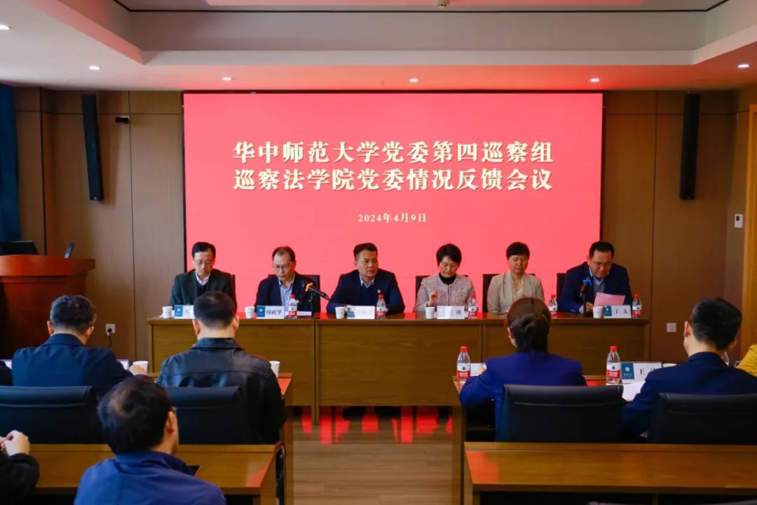 校党委巡察工作办公室负责同志、第四巡察组成员,法学院领导班子成员、在职教职工及离退休教职工代表、学生代表参加会议。