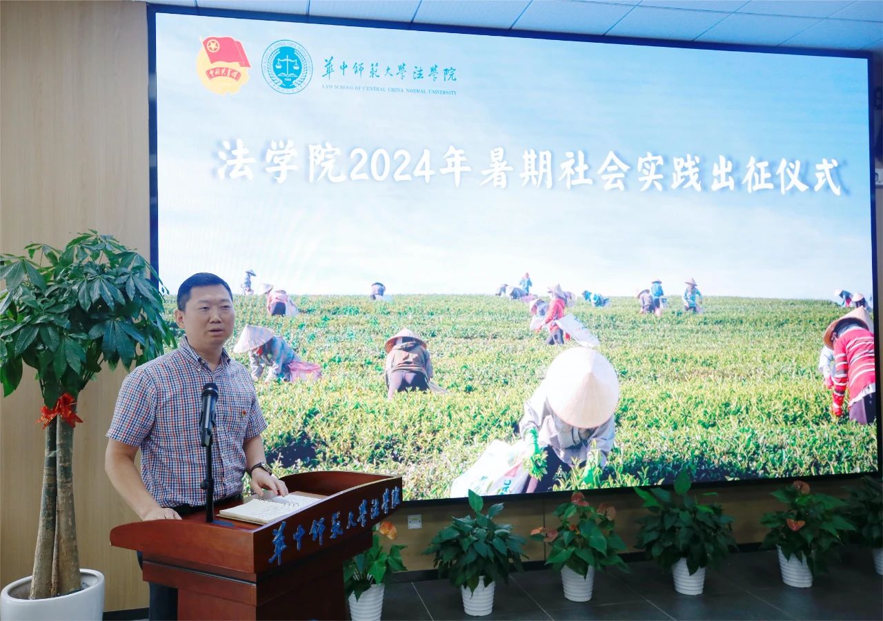 姜孝文宣读《关于成立华中师范大学法学院2024年社会实践团队若干临时团支部的决定》。她要求实践队伍在保证安全前提下把思想政治教育和法治宣传教育同社会实践相结合,上好社会实践这一大思政课。