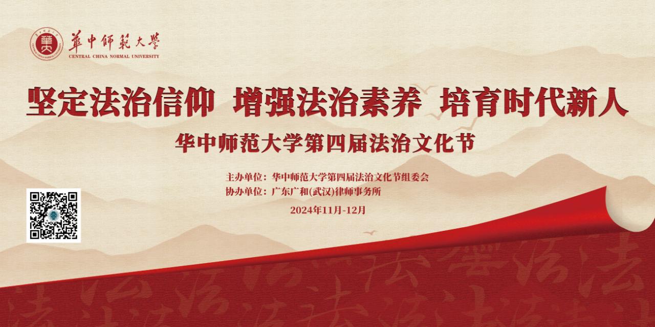 党的二十届三中全会指出,法治是中国式现代化的重要保障。必须全面贯彻实施宪法,维护宪法权威,要弘扬社会主义法治精神,维护社会公平正义,全面推进国家各方面工作法治化。为深入学习宣传贯彻党的二十届三中全会精神和习近平法治思想,弘扬法治精神,建设法治校园,营造法治文化氛围,增强师生尊法学法守法用法的自觉性和主动性,提升师生的法治意识和法治素养,打造华中师范大学法治教育品牌,学校举办第四届法治文化节。本届法治文化节的主题是“坚定法治信仰,增强法治素养,培育时代新人”,将面向全校师生开展近20场法治宣传教育活动,为全校师生奉上丰盛的法治教育大餐,期待全校师生的广泛参与。