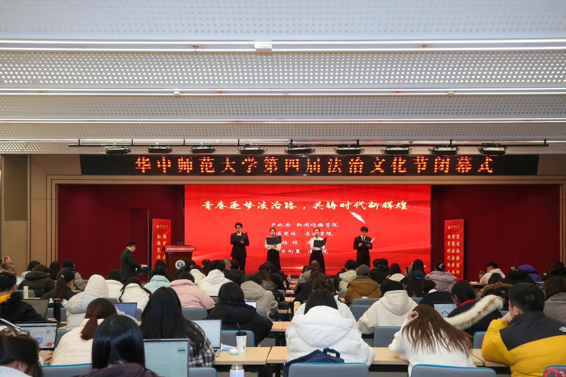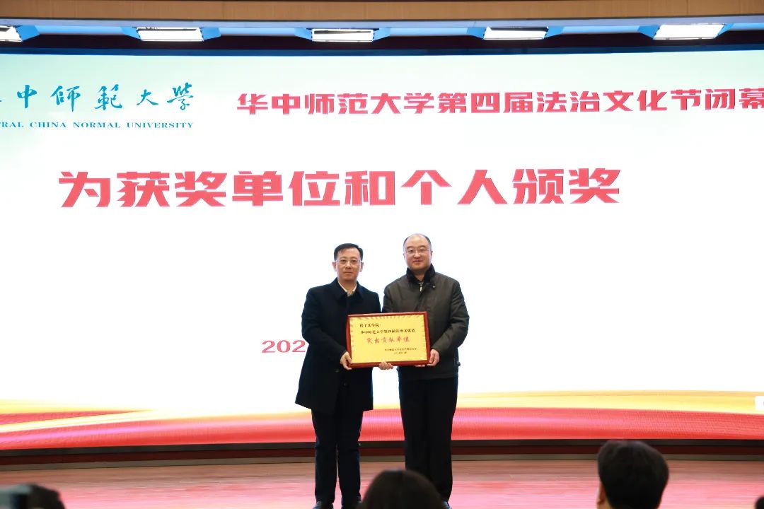 12月13日,华中师范大学第四届法治文化节闭幕式在文科科研楼一楼报告厅举行。校党委副书记、纪委书记刘继文,湖北省司法厅普法与依法治理处处长顾丹、学校办公室主任徐刚、后勤保障部部长袁本芳、法学院党委书记杨臣、法学院院长丁文,学校办公室副主任刘阳、党委宣传部副部长钟文锐、党委学工部思政处副处长李宪玲、保卫处副处长柳亚涛,广东(广和)律师事务所主任卢成尤,马克思主义学院副处职组织员刘方、经济与工商管理学院党委副书记陈娟、外国语学院党委副书记陈哲、物理科学与技术学院党委副书记马英、人工智能教育学部党委副书记李娜、法学院副院长文杰、肖登辉和学校办公室、公共管理学院、化学学院、美术学院、广东(广和)律师事务所等单位的师生代表200余人出席,法学院党委副书记万枞主持闭幕式。
