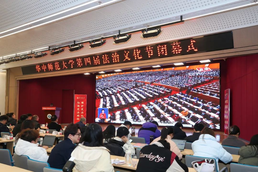 活动开始前,全体师生共同观看第四届法治文化节总结视频。视频回顾了本届法治文化节期间举办的各项精彩活动及取得的丰硕成果,生动展现了华师学子对法治文化的尊崇和热爱。