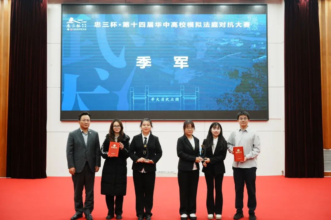 2024年12月1日,由武汉大学主办的“忠三杯·第十四届华中高校模拟法庭对抗大赛”在武汉大学法学院圆满落幕。本届比赛共有武汉大学、华中科技大学、华中师范大学、中南财经政法大学等16所华中地区高校参加,由法律实务界与学术界的专家担任评委。经过激烈角逐,我院代表队从16支队伍中脱颖而出进入半决赛,最终荣获季军,领队郭苗获“优秀辩手”及“优秀领队”荣誉称号。