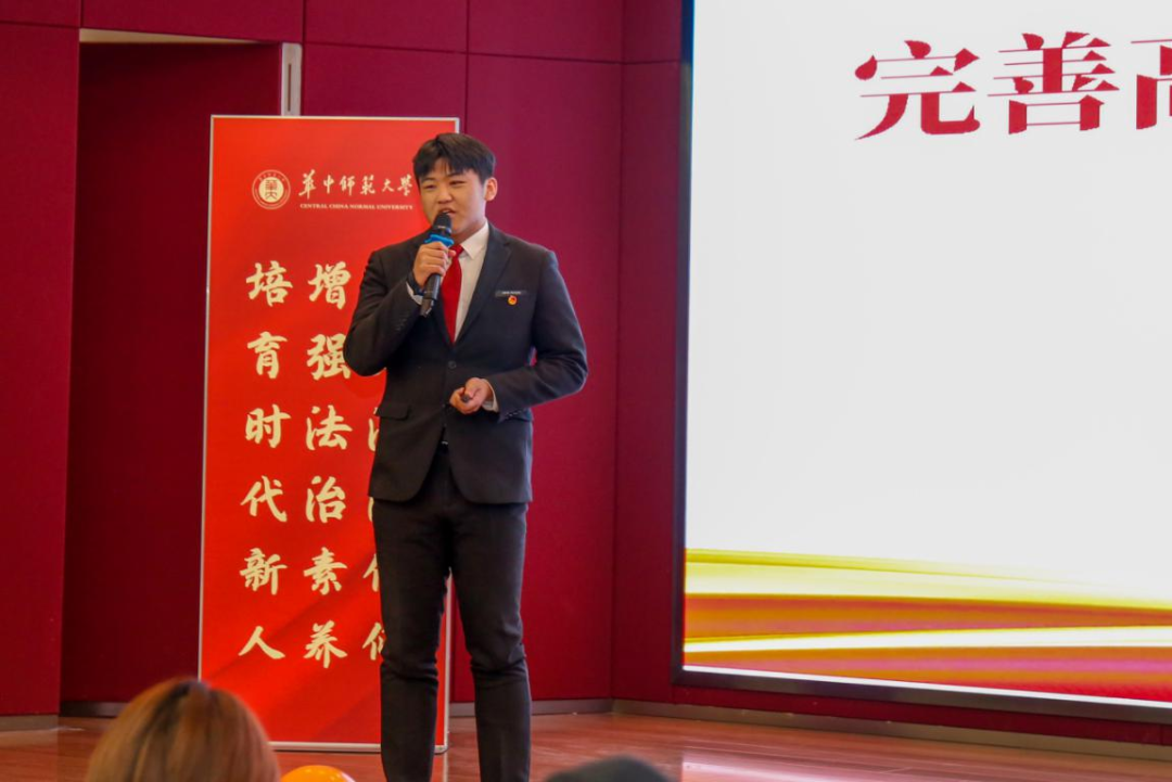 为深入学习习近平法治思想,提升广大青年尊法、学法、守法、用法的自觉性和主动性,12月7日下午,华中师范大学第四届法治文化节系列活动之“法治好声音”演讲比赛决赛在文科综合楼一楼报告厅举行。湖北共合律师事务所主任、武汉市人大代表程红霞,湖北广播电视台湖北之声主持人叶建恩,武汉广播电视台交通广播、公益普法节目《法在身边》主持人郝丹,汉阳区人民检察院检察官韩哲昊,华中师范大学新闻传播学院播音与主持艺术系讲师徐阳担任比赛评委。法学院党委副书记万枞,信息与管理学院党委副书记王涛,音乐学院党委副书记陈晓刚,物理科学与技术学院辅导员王益阳,武汉市洪山区司法局法治科科长王纬出席活动。活动由新闻传播学院2024级本科生陈俊杰和法学院2024级本科生刘雨乐主持。