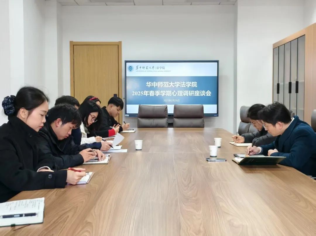 2月26日上午,法学院2025年春季学期心理调研座谈会在法学院313顺利召开,校党委学生工作部副处长鲍新龙、心理健康教育中心教师陈真珍出席,法学院党委副书记万枞、法学院全体专兼职辅导员参加会议。会议由万枞主持。