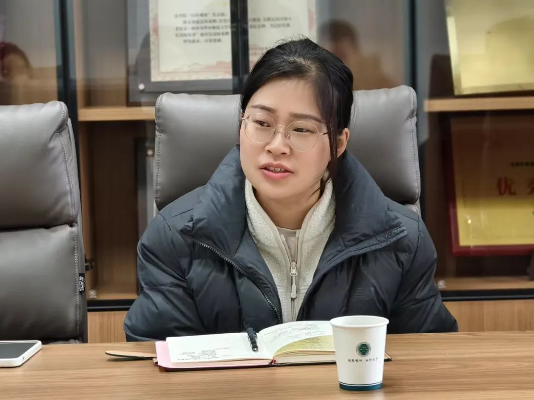 万枞介绍了法学院心理健康教育工作的基本情况、工作思路、具体做法以及工作中遇到的困难。万枞指出,学院高度重视学生的心理健康教育工作,通过各种形式和渠道了解帮助学生, 做好重要时期和重要节点的心理健康教育,营造良好学风。同时,就学生返校情况、假期及开学后的思想动态、学风建设、防诈骗教育以及学生工作建议等方面进行了汇报。