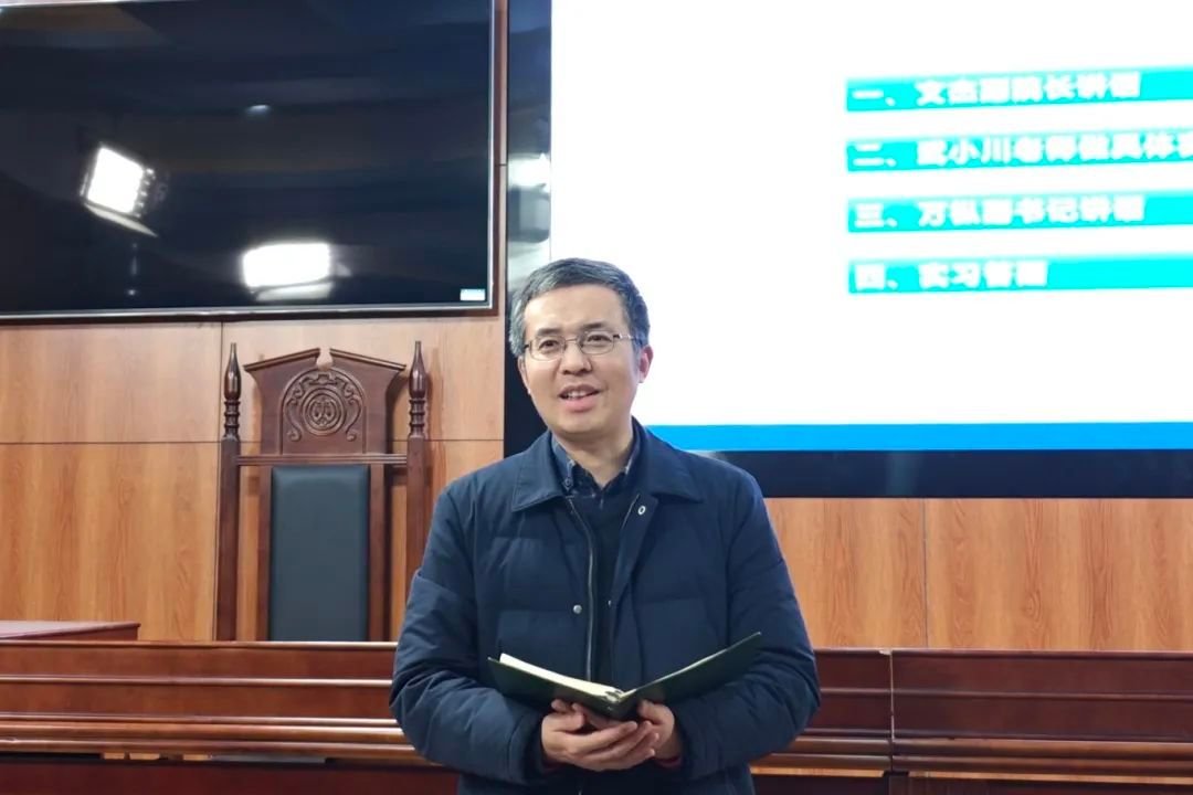 万枞在总结讲话中强调,同学们应当高度重视、认真对待、深刻认识专业实习。专业实习是法律硕士培养方案中的重要环节之一,是对同学们的一次综合考验,以帮助同学们明确职业定位与发展方向。实习期间,应畅通指导老师与学生间的交流机制,落实实习指导工作。万枞表示,学院将构建全方位服务保障,助力同学们顺利完成实习。